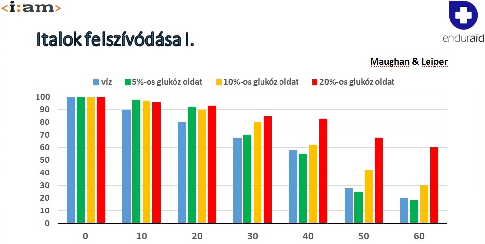 Az ábra azt mutatja, hogy a különböző sűrűségű cukoroldatok milyen gyorsan hagyják el a gyomrot és jutnak el a felszívódás